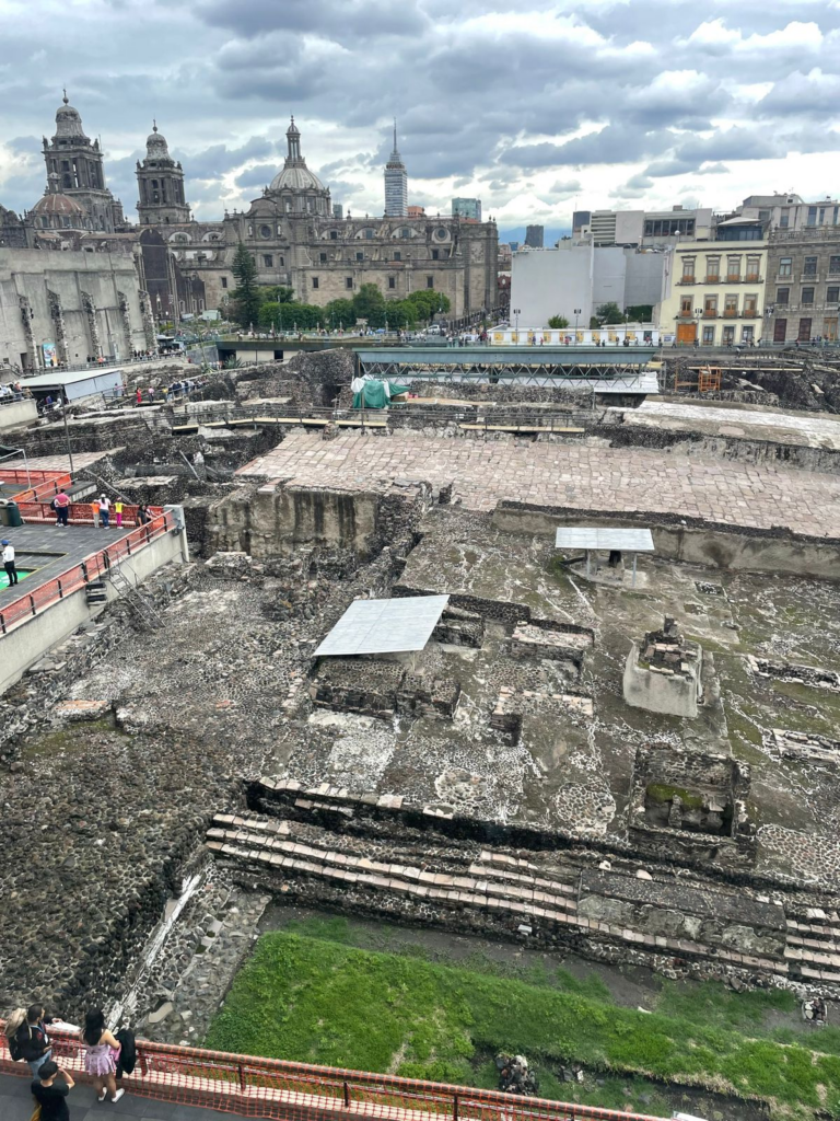 Desde ahí, nos lanzamos al ruedo. Nuestro recorrido fue un comprimido de esencias. Caminamos por Reforma, sintiendo el pulso de la ciudad en sus anchos camellones. Descendimos a las entrañas del Templo Mayor, donde el pasado prehispánico susurra entre piedras talladas justo al lado de una calle atestada de tráfico.